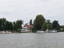 Wir fahren bis Kladow wie in Törn 4 beschrieben und dann weiter bis die Pfaueninsel vor uns liegt. Wir sehen das Gasthaus Nicolskö und die Kirche Peter und Paul. Der Wendepunkt unseres Törns ist erreicht, mit einem Abstecher zum Strandbad geht es zurück zum Yachthafen Nieder Neuendorf.